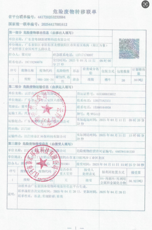2025年危廢聯單